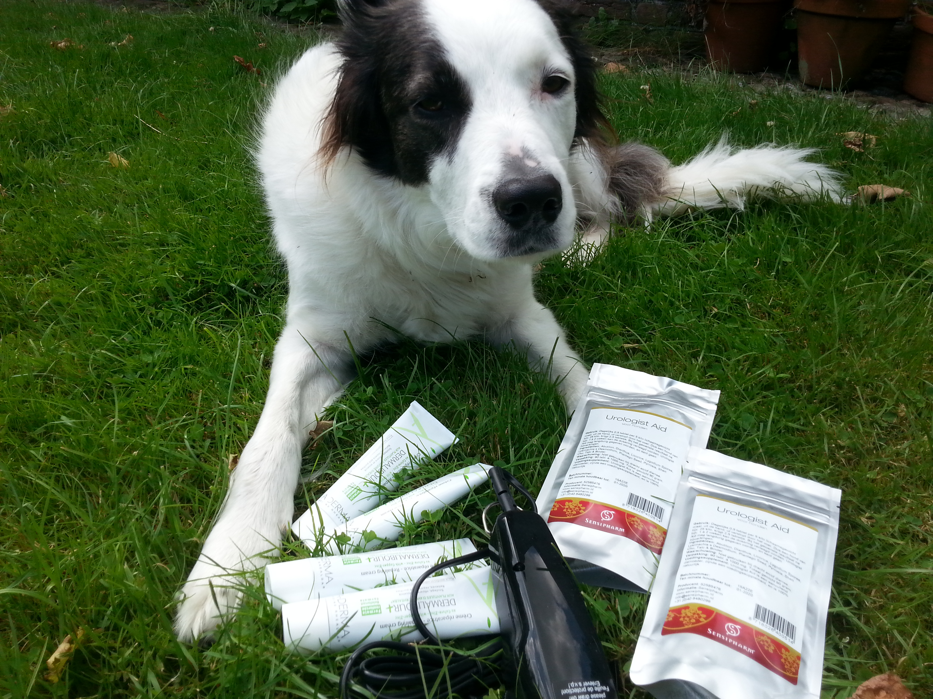 2 zakjes Urologist Aid – betaald uit verkoopopbrengst van de Angel’s Choice Shop, 4 tubes Dermalibour (huidzalf) – dankjewel Danni!, 1 trimapparaat – cadeautje van NN
