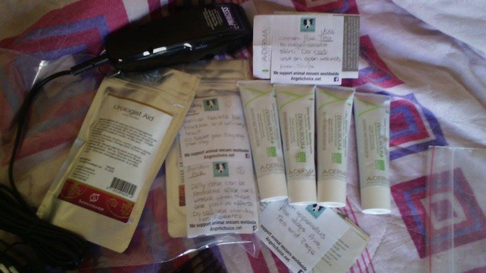 Gehandicapte Zaga gebruikt gehandicapte Teo graag als kussen. De rode plekken op Teo’s lichaam zijn de overblijfselen van vreselijke wonden. De dermalibour creme die we hebben opgestuurd naar zijn opvangmoeder Silvija in Skopje, Macedonië, zal worden gebruikt om het huidweefsel op die plekken te vernieuwen. Natuurlijk wordt de creme ook gebruikt voor Zaga en Ava (de andere gehandicapte hond die wordt opgevangen door Silvija), want zij hebben ook ernstige wonden gehad.