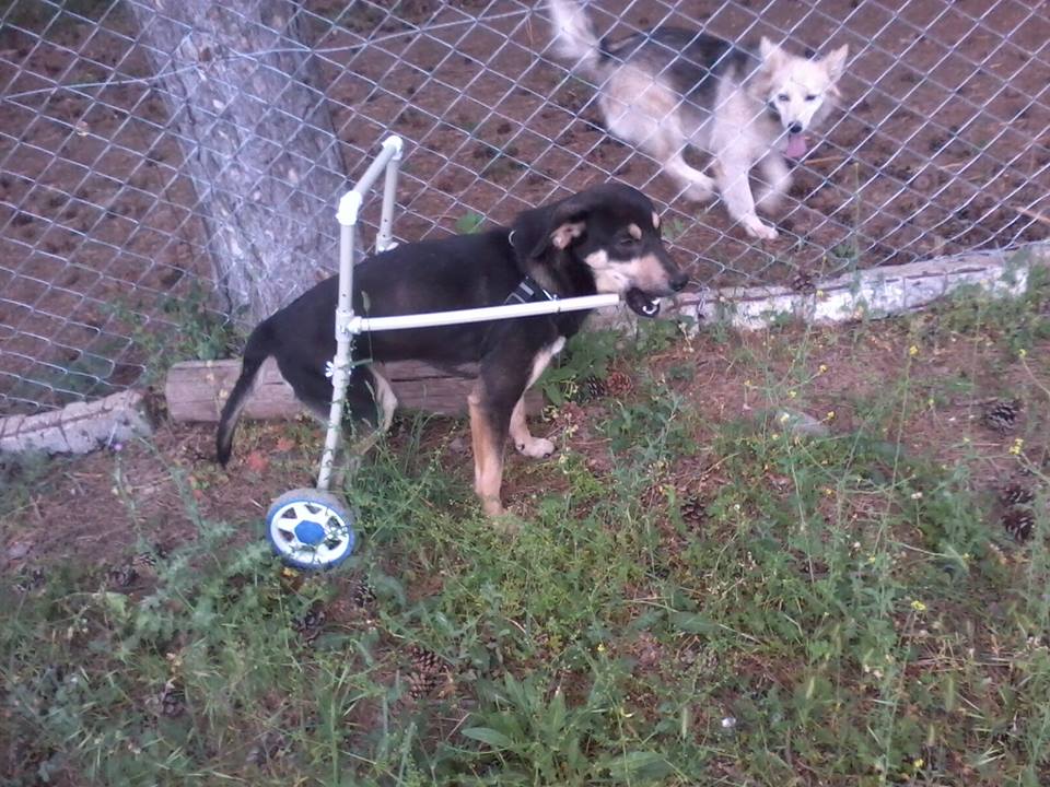 Toen Tomce begin 2015 werd gevonden kon hij niet lopen. De mensen van Animalia Ohrid dachten dat hij was aangereden, maar röntgenfoto’s lieten zien dat hij door iemand is geslagen. Hij kan op alle vier zijn poten staan, maar zijn achterpoten kan hij niet bewegen. Tomce is een erg lieve jongen, geboren in 2012, misschien 2013. Hij houdt van iedereen, mens en hond. Hij lacht altijd 🙂 Wanneer je naar hem kijkt, moet je ook lachen. Hij heeft echt een echt thuis nodig bij mensen die enorm van hem houden en hem alle tijd, zorg, liefde, aandacht geven die hij nodig heeft en verdient. Help ons alsjeblieft een thuis voor hem te vinden. Bij voorkeur in West-Europa.