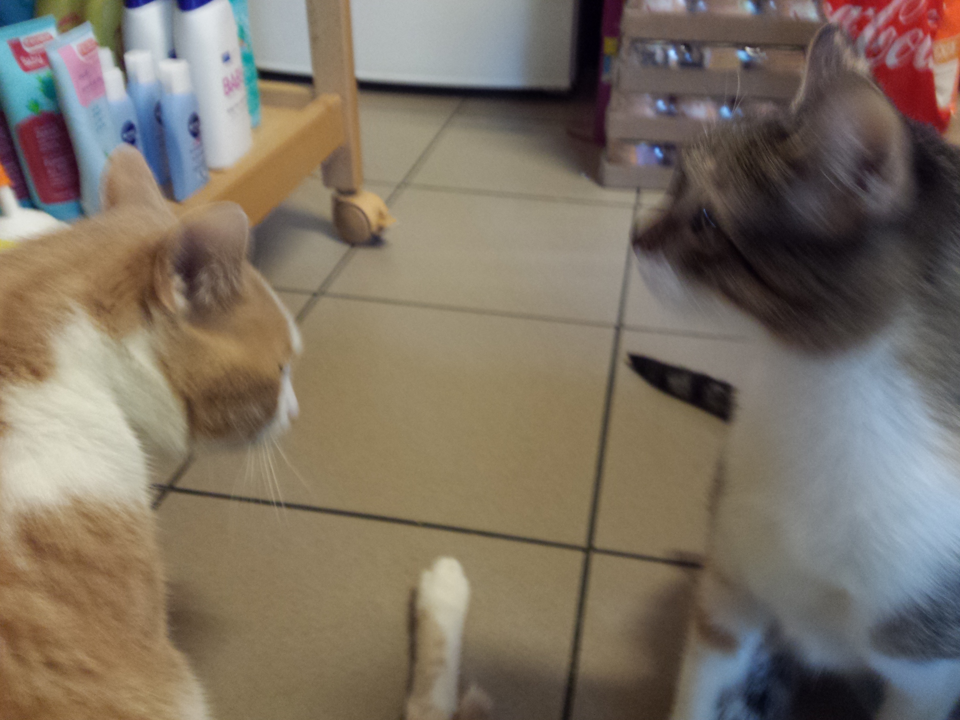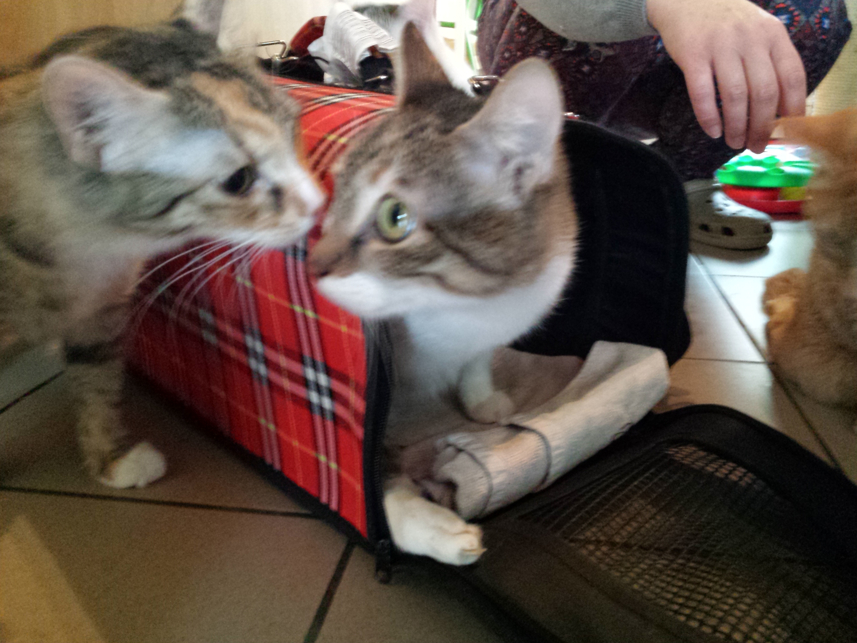 Afgelopen augustus ging gehandicapte Tokito uit Skopje, Macedonië, bij de Kattenbrigade in België wonen. Op 6 oktober 2015 voegde Cali zich weer bij hem. In de korte tijd dat ze samen bij Angelcats Sanctuary in Skopje woonden waren ze vriendjes. Tokito en ook veel van de andere katten waren heel nieuwsgierig wat voor poesje er uit de geruite tas kwam.